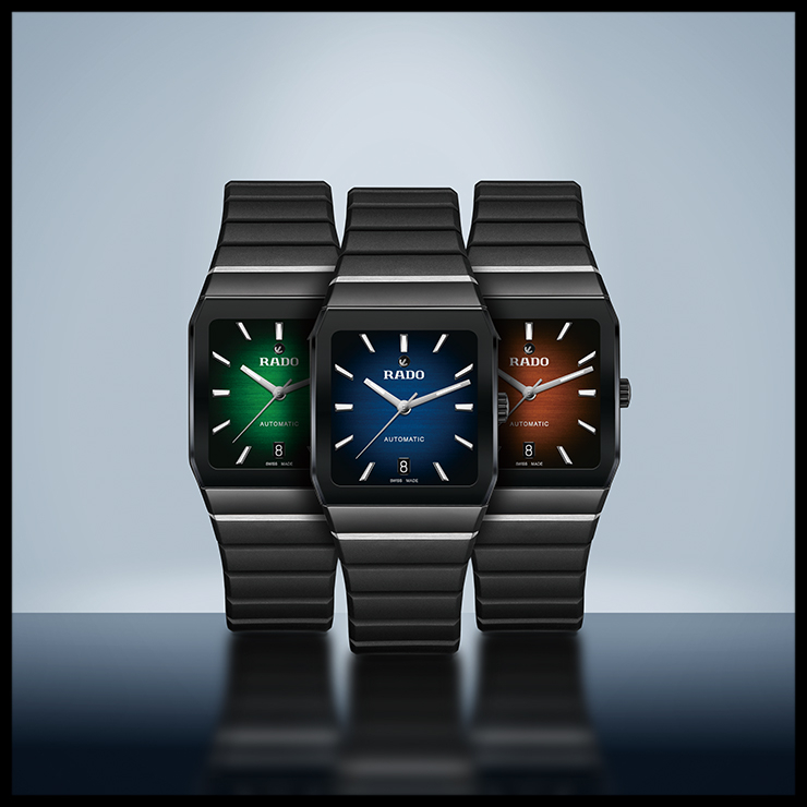 미도 멀티포트 TV 빅 데이트 블랙 그러데이션 다이얼과 오렌지 러버 밴드의 조화가 돋보이는 시계. 총 5가지 모델로 출시됐다.
