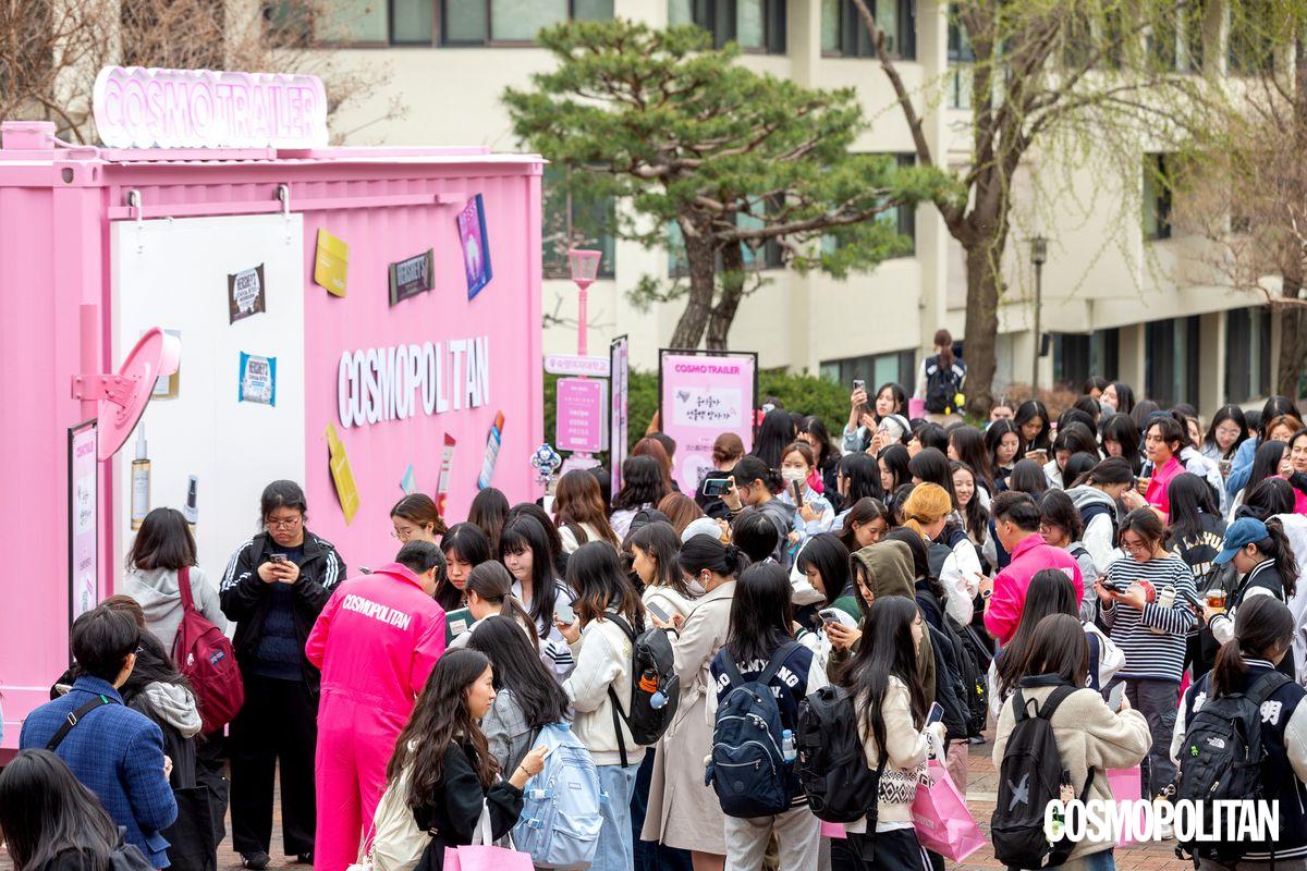 지난 4월 9일, ‘코스모 트레일러’가 재미와 선물을 가득 싣고 숙명여자대학교를 찾았습니다. 2030 세대의 빛나는 청춘을 응원하기 위해 2023년 숙명여대에서 첫 발을 디딘 코스모 트레일러. 이번 현장은 두 번째 방문에 걸맞게 행사 시작 전부터 긴 줄이 생기며 뜨거운 참여를 보여주었습니다.