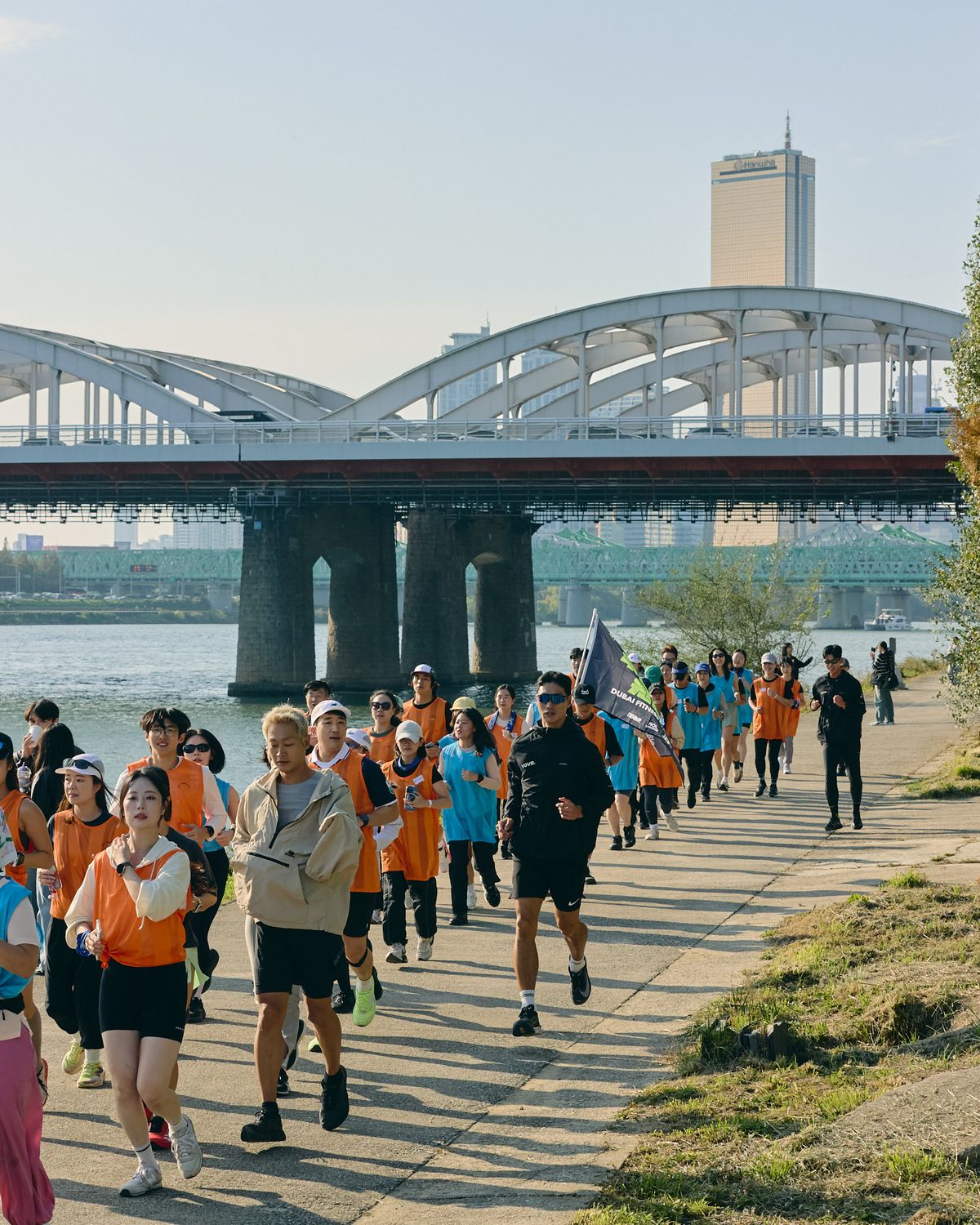 63빌딩을 배경으로 한강변을 달리는 러닝 클래스.